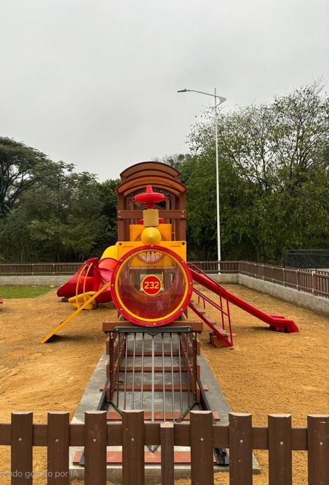 PLAYGROUND TEMÁTICO TREM COM VAGOES , várias cores, ensaio de acordo com a norma ABNT NBR 16071-2012 Estrutura principal com colunas de a carbono redondo 4”x2mm, revestida com metalização apresentando ensaio em tubo de aço fosfatizado conforme norma ABNT 9209:1986, piso em aço carbono metalizado 3mm apresentando ensaio NBR 8094:1983, Material metálico revestido e não revestido corrosão por névoa salina. E secundária com acessórios em aço, tubos redondos de 1”x2mm, 1.1/4”x2mm, 1.1/2”x2mm, 2”x2mm, retangulares de 30 x 50 x 2mm, quadrado de 15x15x2mm, barra maciça de 9 mm, barra chata de 1.1/2”x1/8”mm, tampas externas de plástico, buchas em nylon apresentando ensaio de resistência a condutividade elétrica ASTM D257. Processo de soldagem TIG/MIG, com laudo de ensaio de bordas cortantes ABNT NBR NM300-1-04 e apresentando ensaio de resistência a tração e arrancamento em tubo soldado ABNT NBR ISO 6892-1:2018, e pintura a pó precedida de banhos químicos, apresentando ensaio de espessura da camada de tinta ABNT NBR 10443-2023, ensaio de aderência da camada de tinta ABNT NBR 11003-2023 e análise química para verificação de metais pesados ABNT NBR NM 300-3. Adesivo com material antivandalismo indicando idade e preferência de uso. Placa de alumínio com marca, mês/ano e demais informação do fabricante.