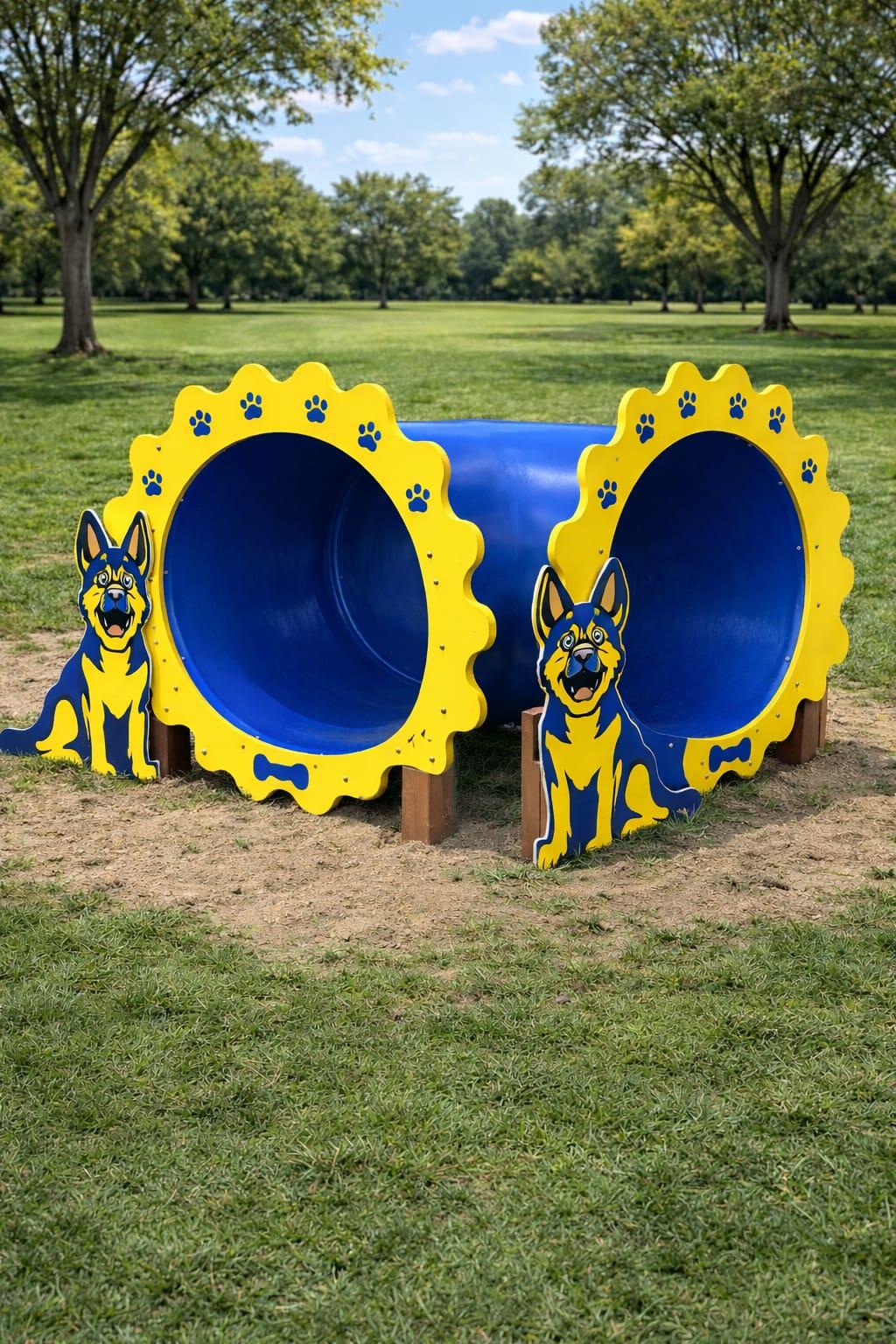 PLAYCÃO TÚNEL CURVO, várias cores, estrutura principal com colunas de madeira plástica quadrada 1500x90x90x5mm revestida com cor de madeira com laudo de ensaio diversos em Lâmina similar a Madeira ASTM D 695/2015. E secundária com tubo de 90 graus em polietileno rotomoldado, com laudo de teste de qualidade do polímero/plástico rotomoldado de envelhecimento acelerado, ABNT NBR ISO/IEC17025, laudo de ensaio de bordas cortantes, ABNT NBR NM300-1, com acabamento em PEAD. Com tampas externas de fechamento em plástico injetado, pinos maciços, parafusos, porcas e arruelas galvanizadas, Laudo de ensaio de Resistência ao intemperismo UVB, ASTM G154/2016 e condutibilidade elétrica (Antiestático) ABNT NBR 14922/2013 e ASTM D257:99(2005).