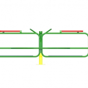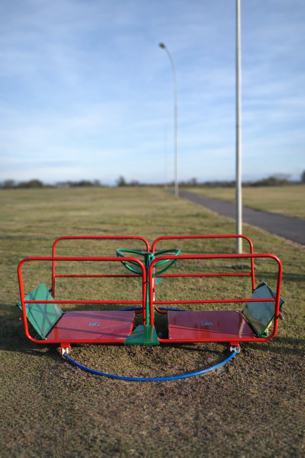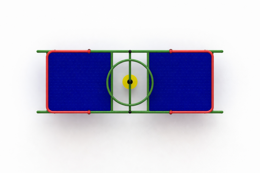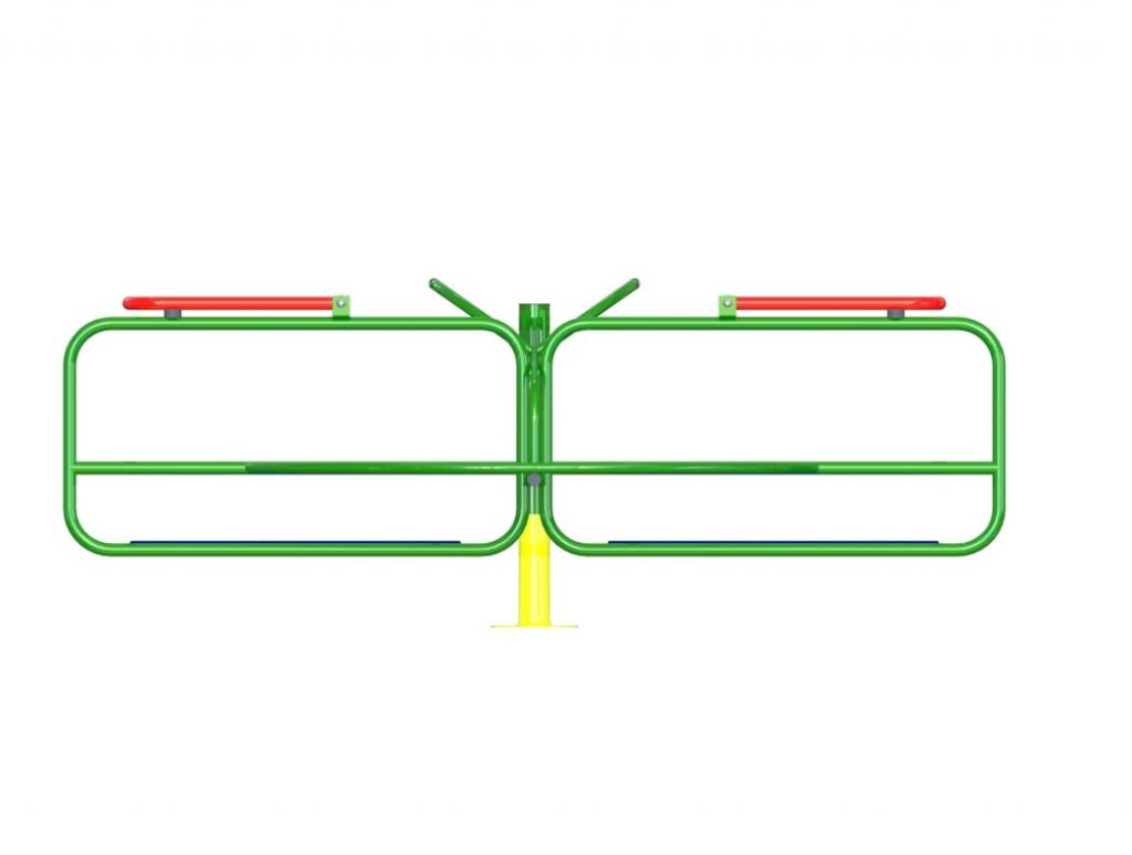 Carrossel Infantil Inclusivo colorido, fabricado em aço carbono, estrutura principal em tubos redondos de 4” X 2 mm. E secundária com tubos redondos, 1.1/4” x 2 mm, 1” x 2 mm, eixo central de rotação com barra trefilada torneada com 45mm, para fixação de Cubo com Rolamento duplo de 45 x 85 mm, chapa de aço com 1,5 mm para os cestos dos cadeirantes 1000 x 1000 mm, mecanismo móvel de travamento para cadeirante com tubo 1.1/4” x 2 mm e dois cubos 1” x 2 x 30 mm com nylon possuindo furo central, “U” medindo 40 x 40 x 25 x 2 mm, parafuso 2” x 1/4” e porca travante 1/4", pegadores com tubo redondo de 1.1/4”, tampa fixada com parafuso, tampa plástica injetado 1”, batente de borracha 2”, trilho de rotação anti-vandalismo com tubo 30x50x2mm, “U” medindo 40 x 40 x 25 x 2 mm, rodinhas com nylon possuindo encaixe de 1”, furo central, parafuso 2” x 1/4” e porca travante 1/4", flange para fixação com 240 x 1/4’, com 6 furos ovalizados 30 x 20 mm para seis parabolds galvanizados 5/8” x 3”, reforço triangular de 150 x 60 mm. Processo de Soldagem Mig e Pintura a pó eletrostática precedida de banhos químicos. Adesivo com material antivandalismo, indicando os músculos trabalhados. Placa de alumínio com marca e demais informação do fabricante. É fornecido manual de instalação com planta baixa. Fabricado de acordo com a norma da ABNT NBR 16071:2012. Medidas Aproximadas: 1300 x 1500 x 2000 mm (AxLxP). Peso aprox. 76 kg. Fabricação nas normas da ABNT, Desenho industrial/técnico com dimensões e peso. Manual de montagem e instalação dos produtos. Montagem em blocos para facilitar o processo. Pode ser utilizado simultaneamente por quatro crianças não cadeirantes e um cadeirante, de 5 a 16 anos. Este produto estimula o desenvolvimento neuropsicomotor e coordenação através da realização dos movimentos de rotação, além de aumentar a interação social.